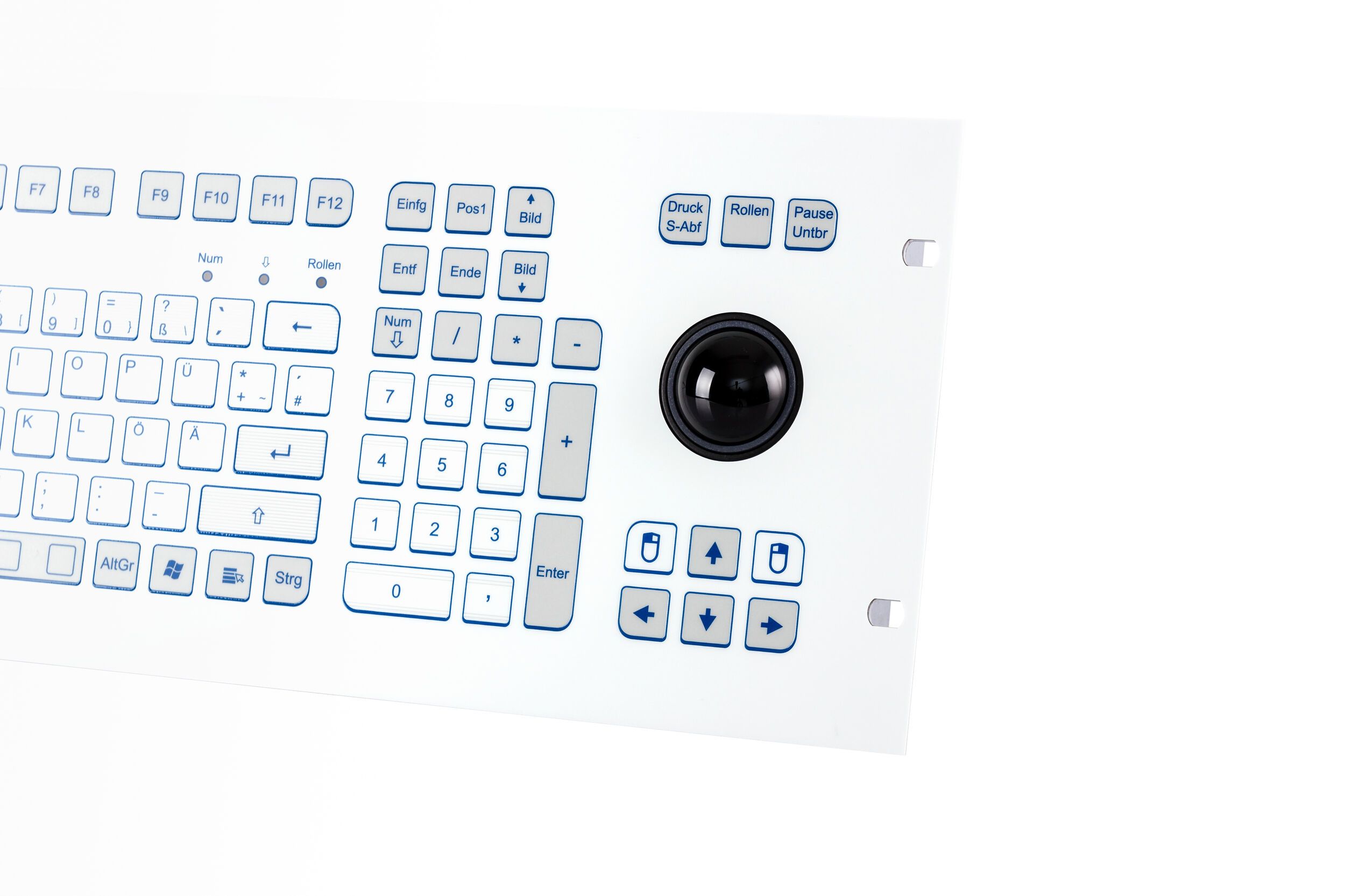 Industrial TKS keyboard for 19" rack integration with 4 HU and integrated 38-mm-trackball.