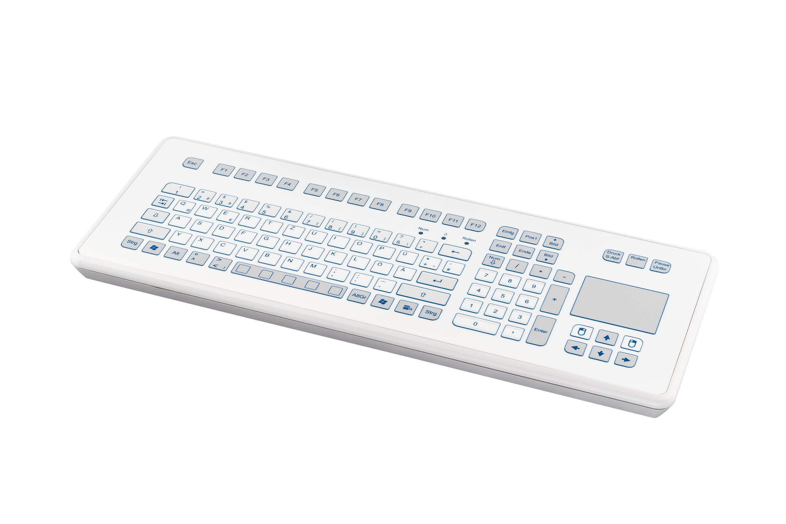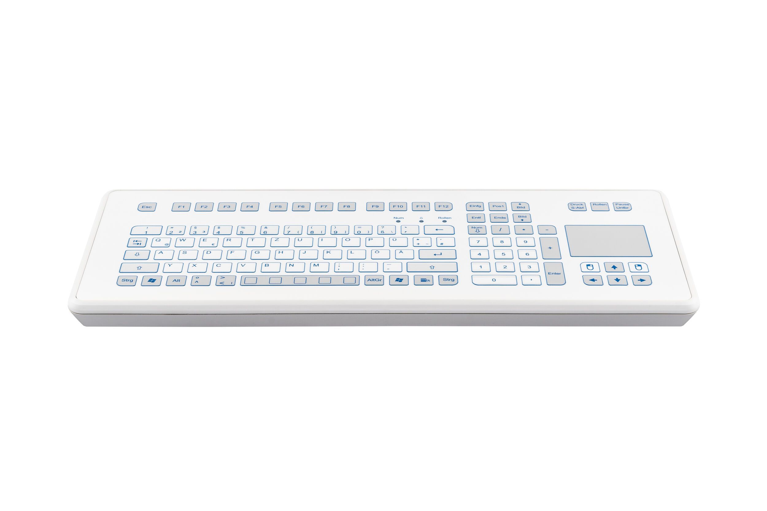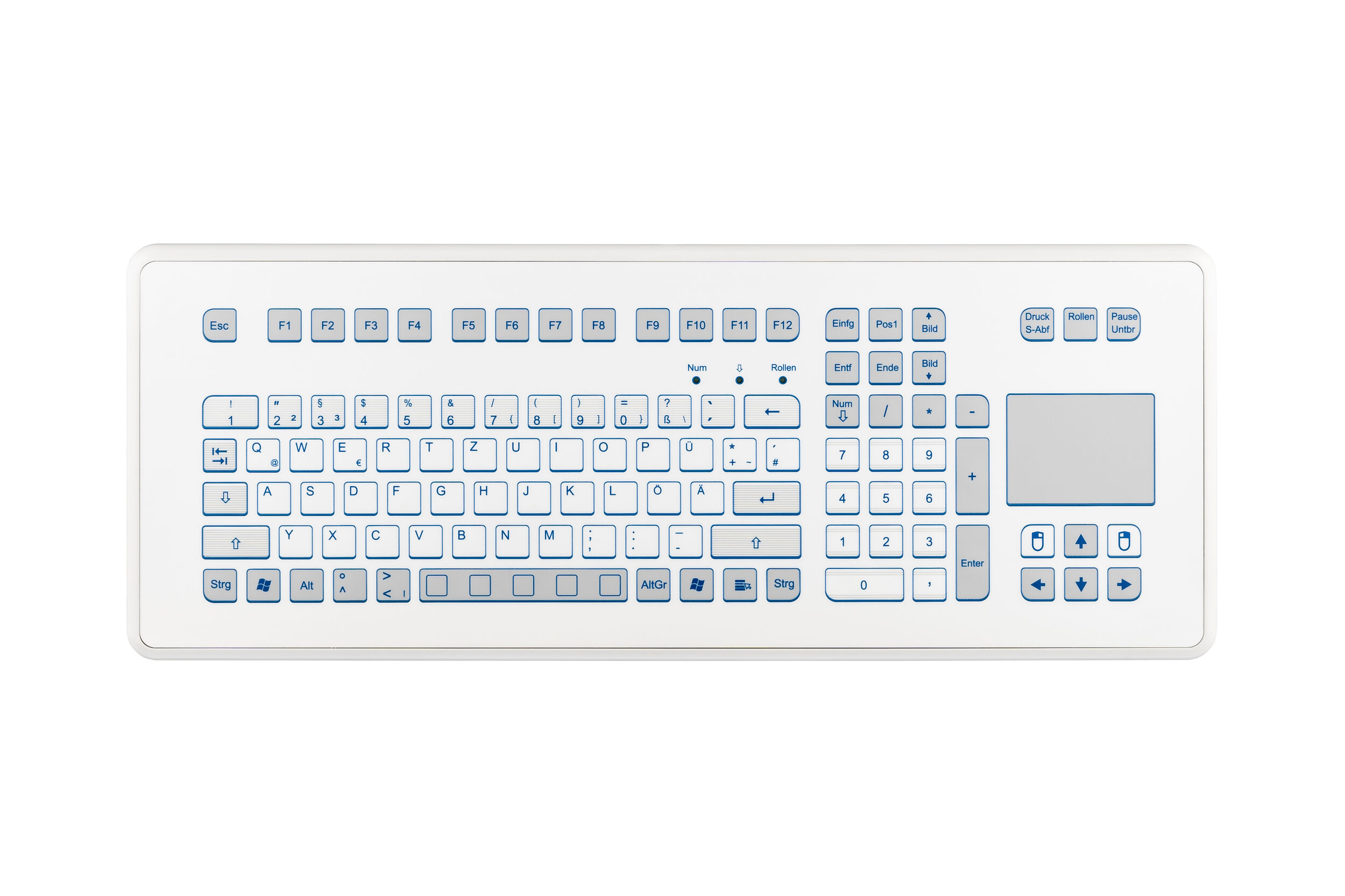 Industrial TKS desktop keyboard with an integrated touchpad.