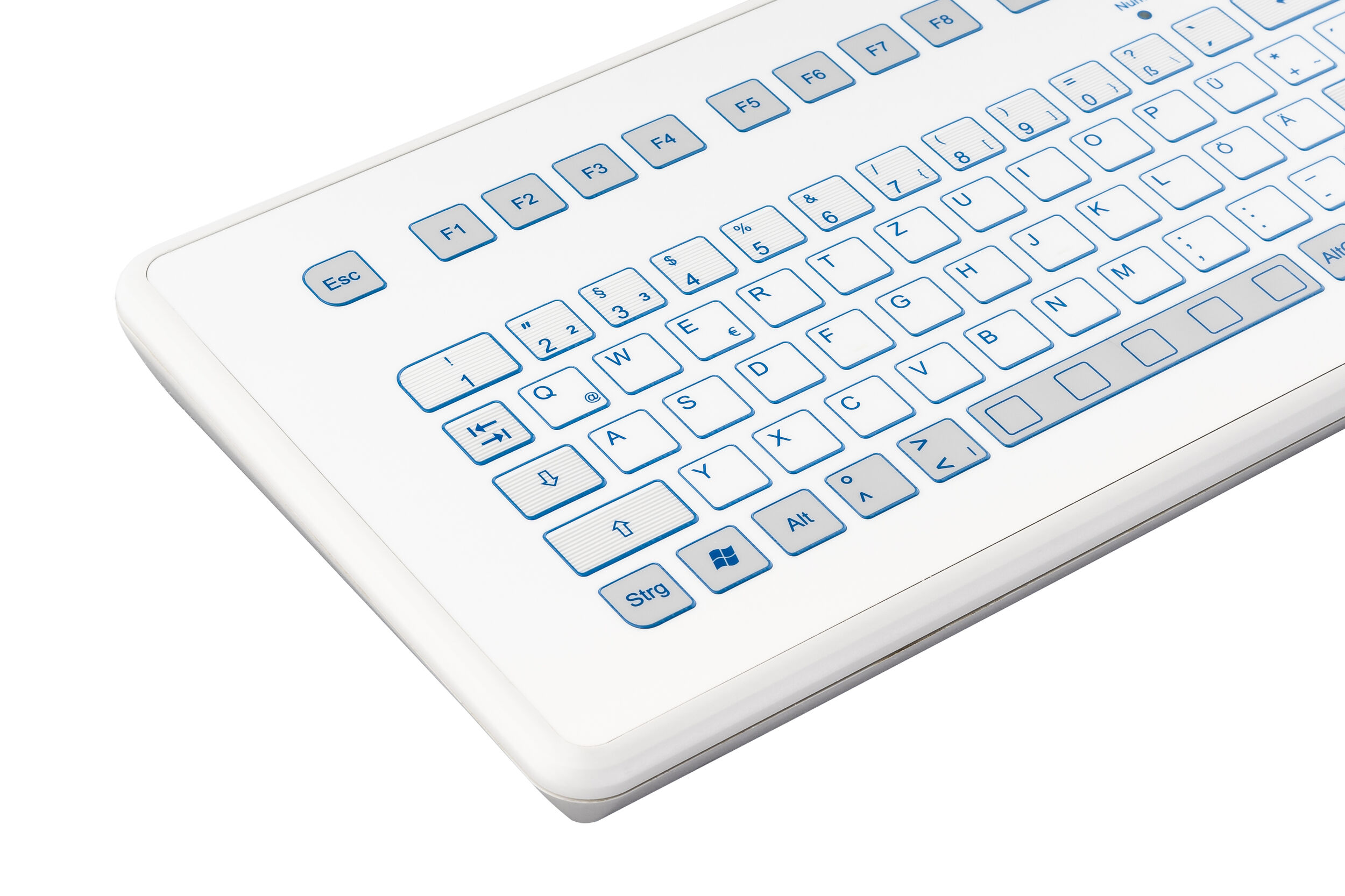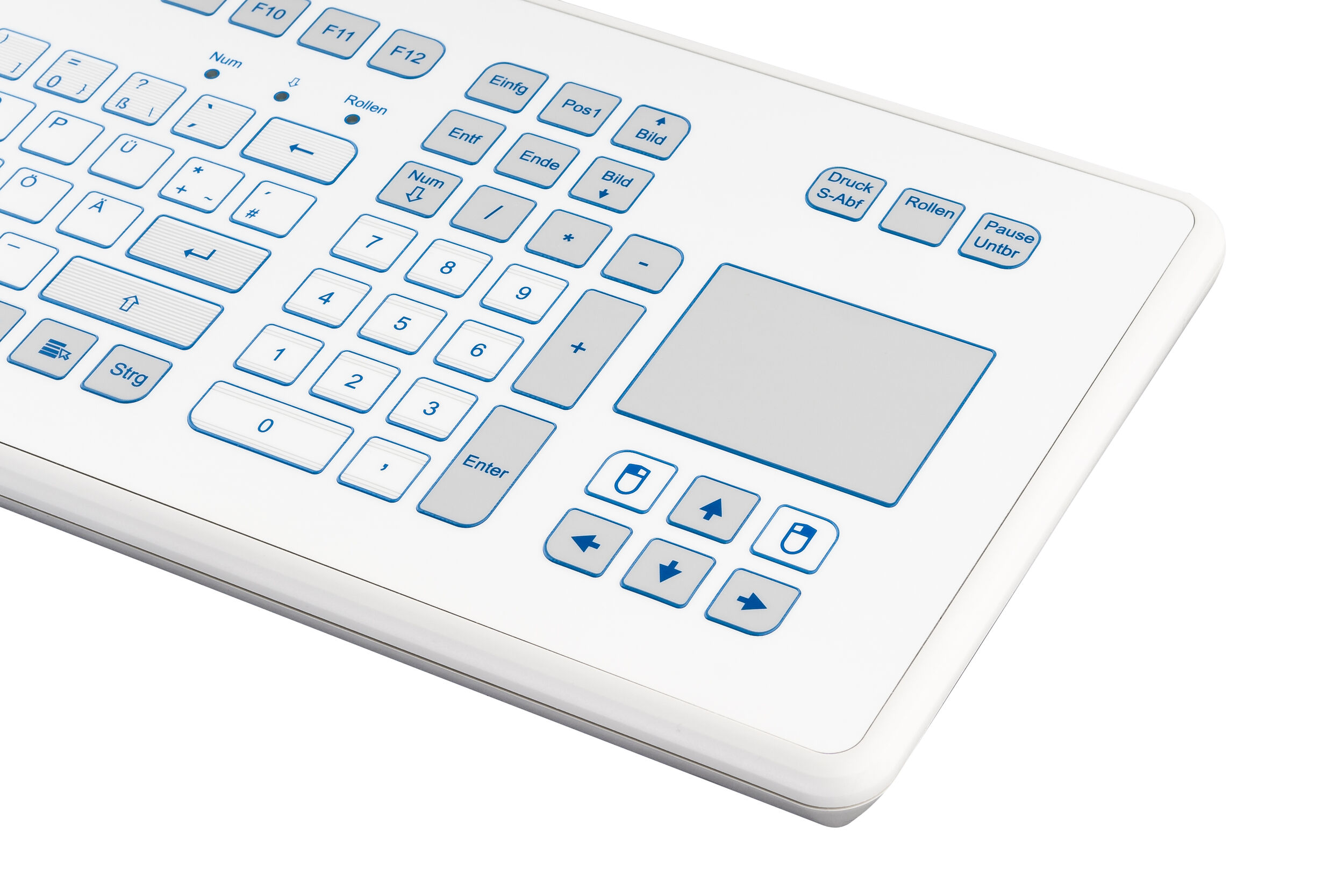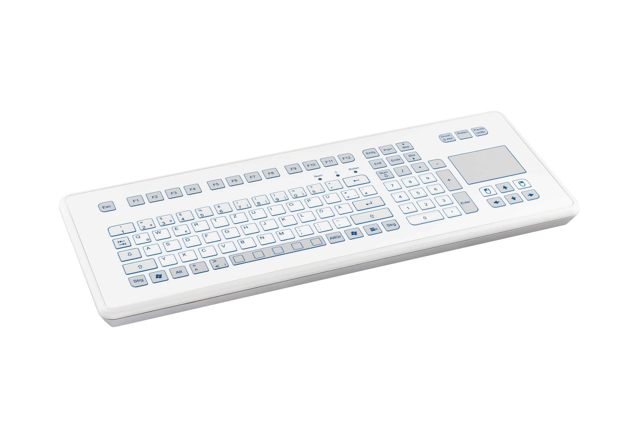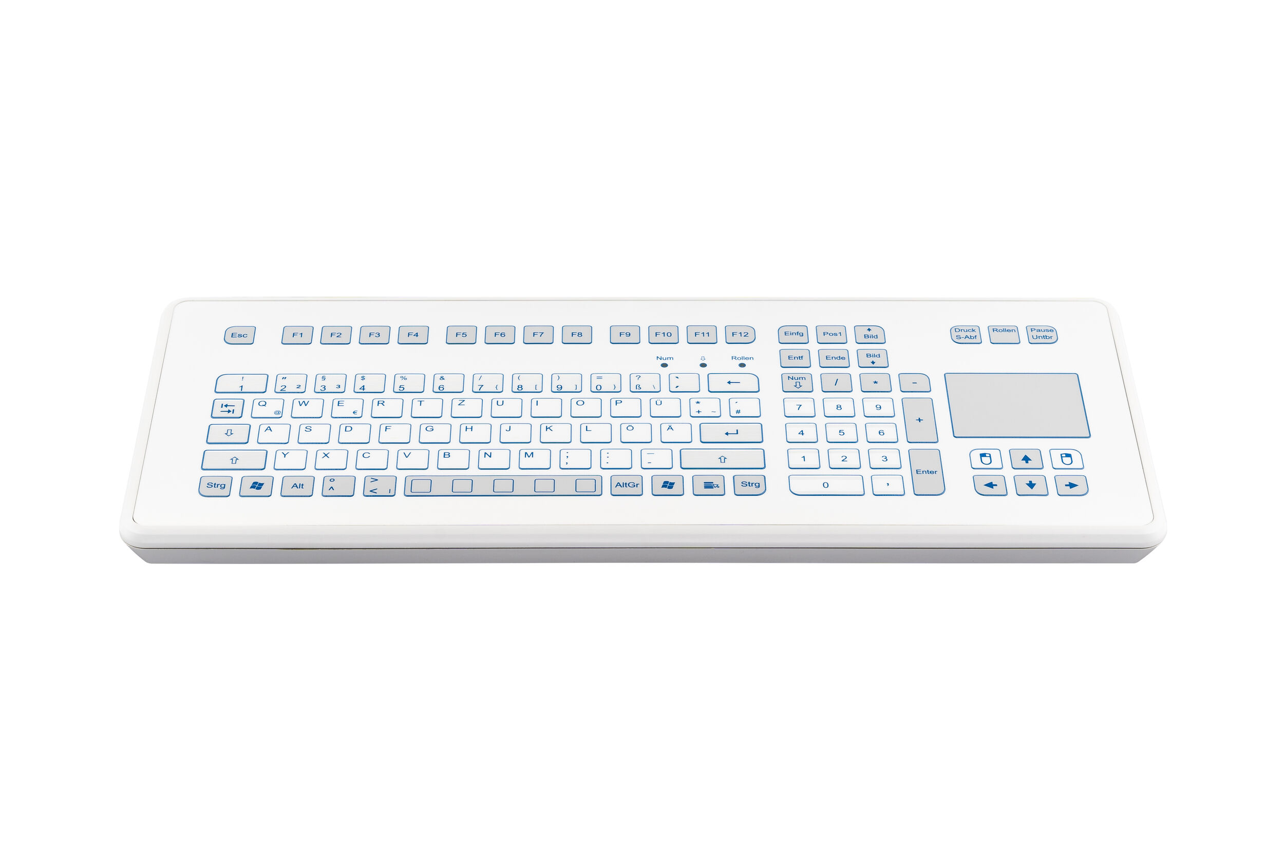 Industrial TKS desktop keyboard with an integrated touchpad.