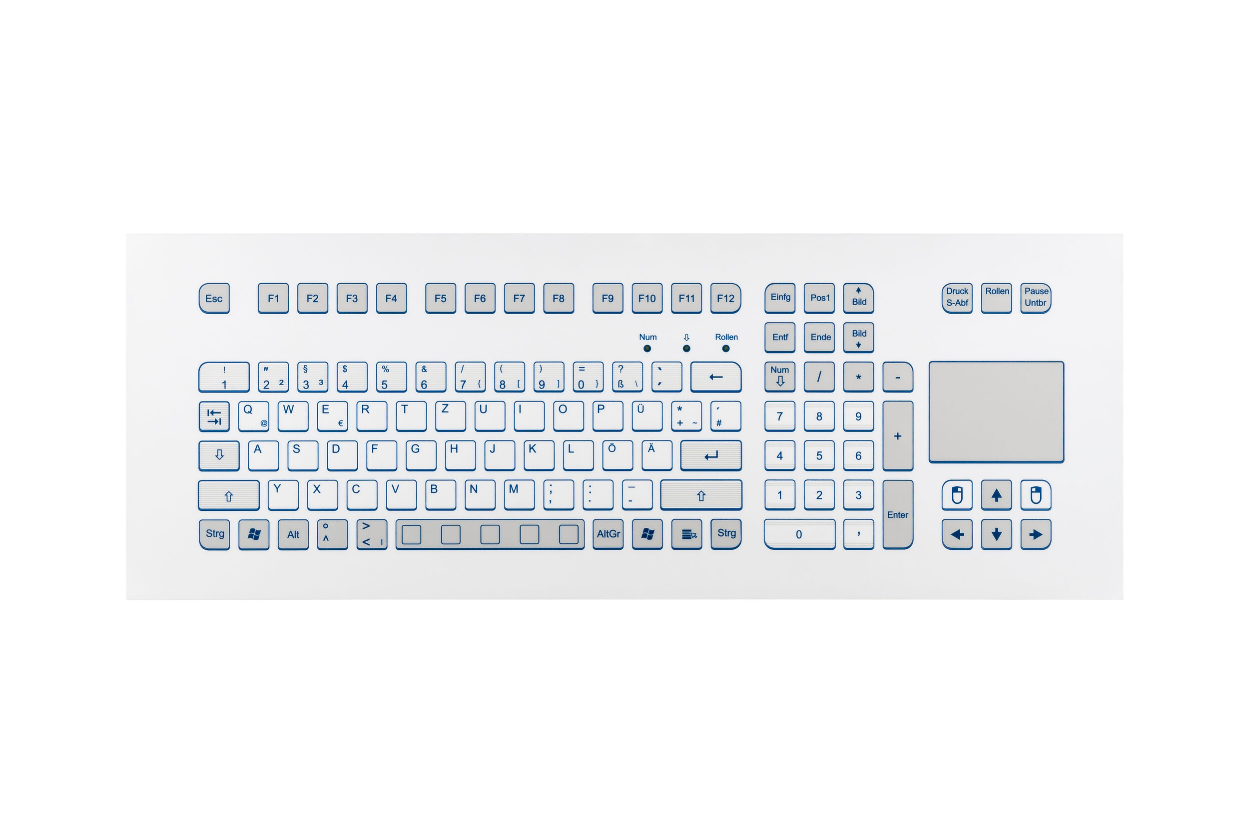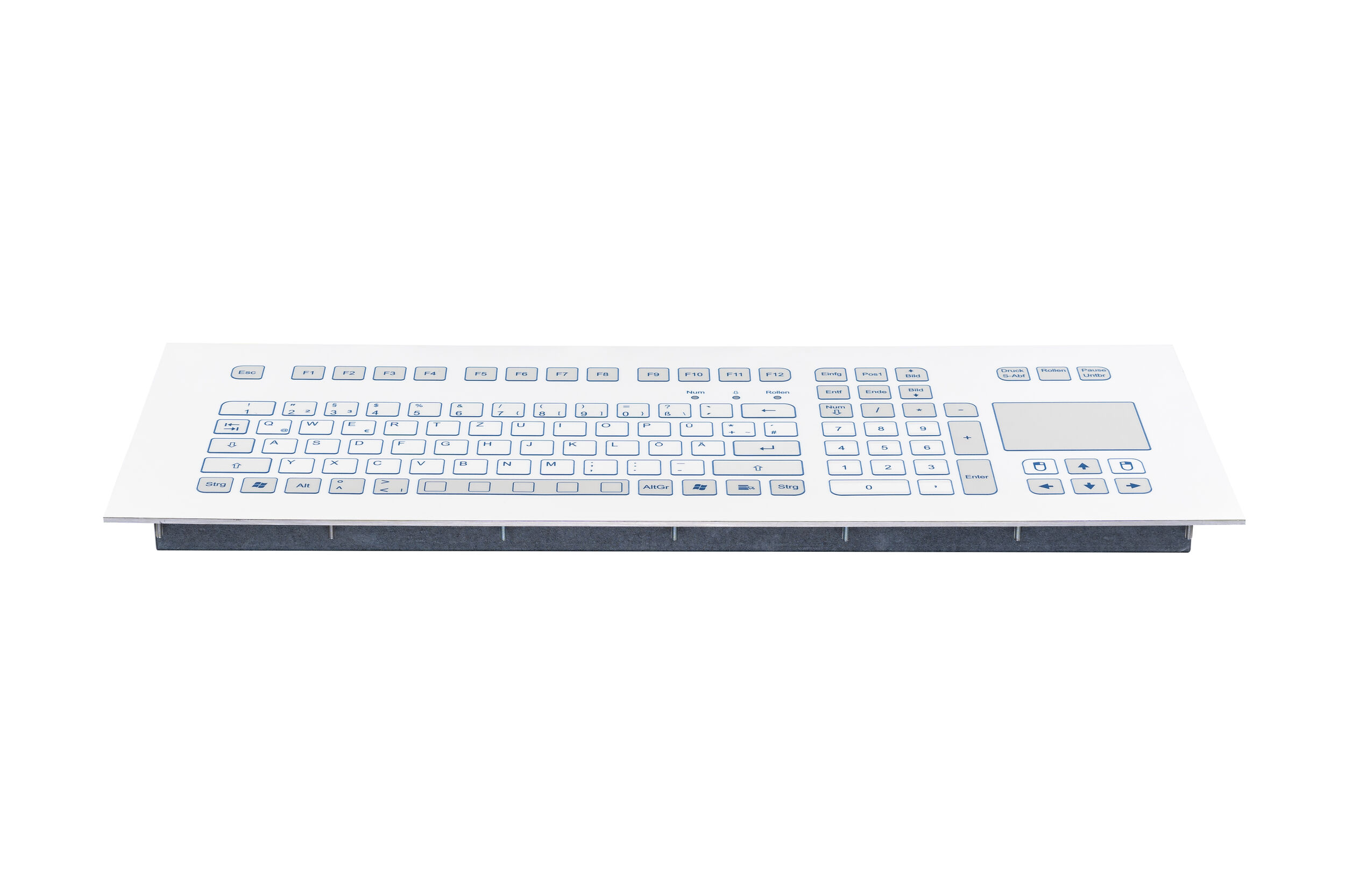Industrial TKS keyboard for front-side integration with integrated touchpad.