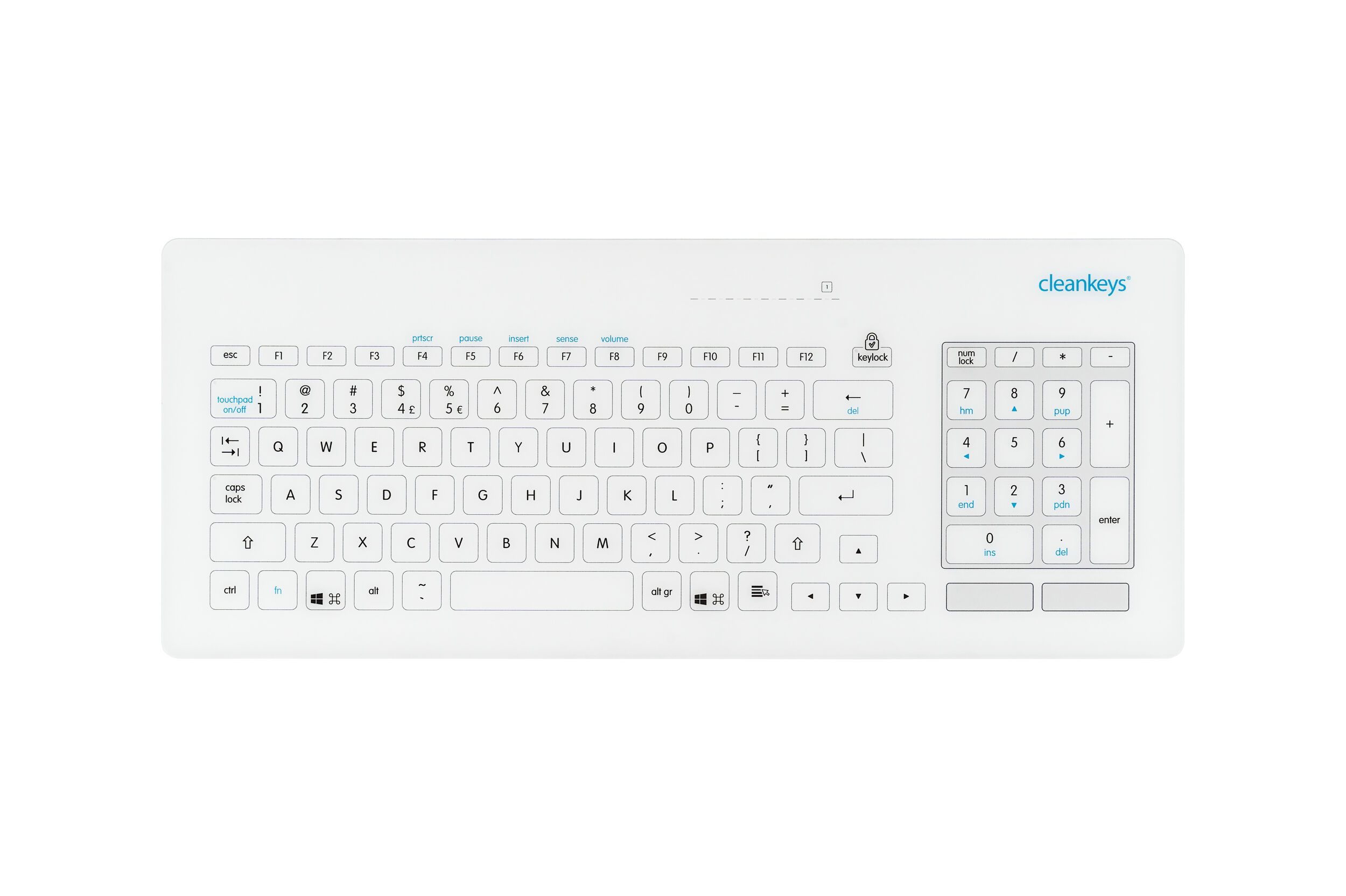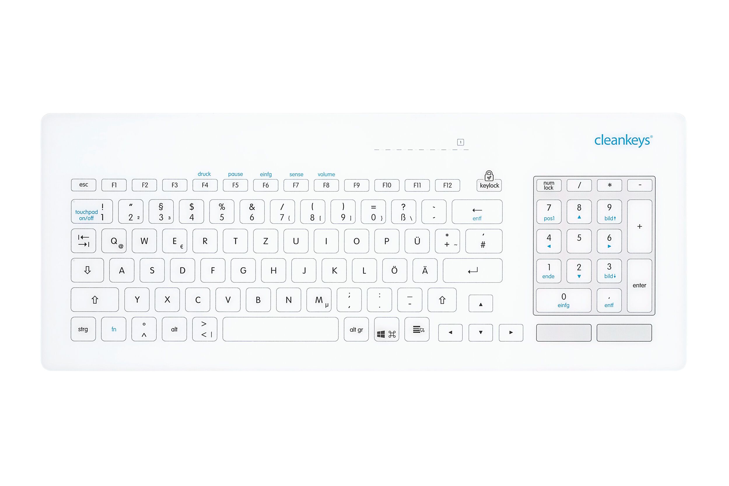 CLEANKEYS® CK5 - Capacitive glass keyboard with touchpad and number pad