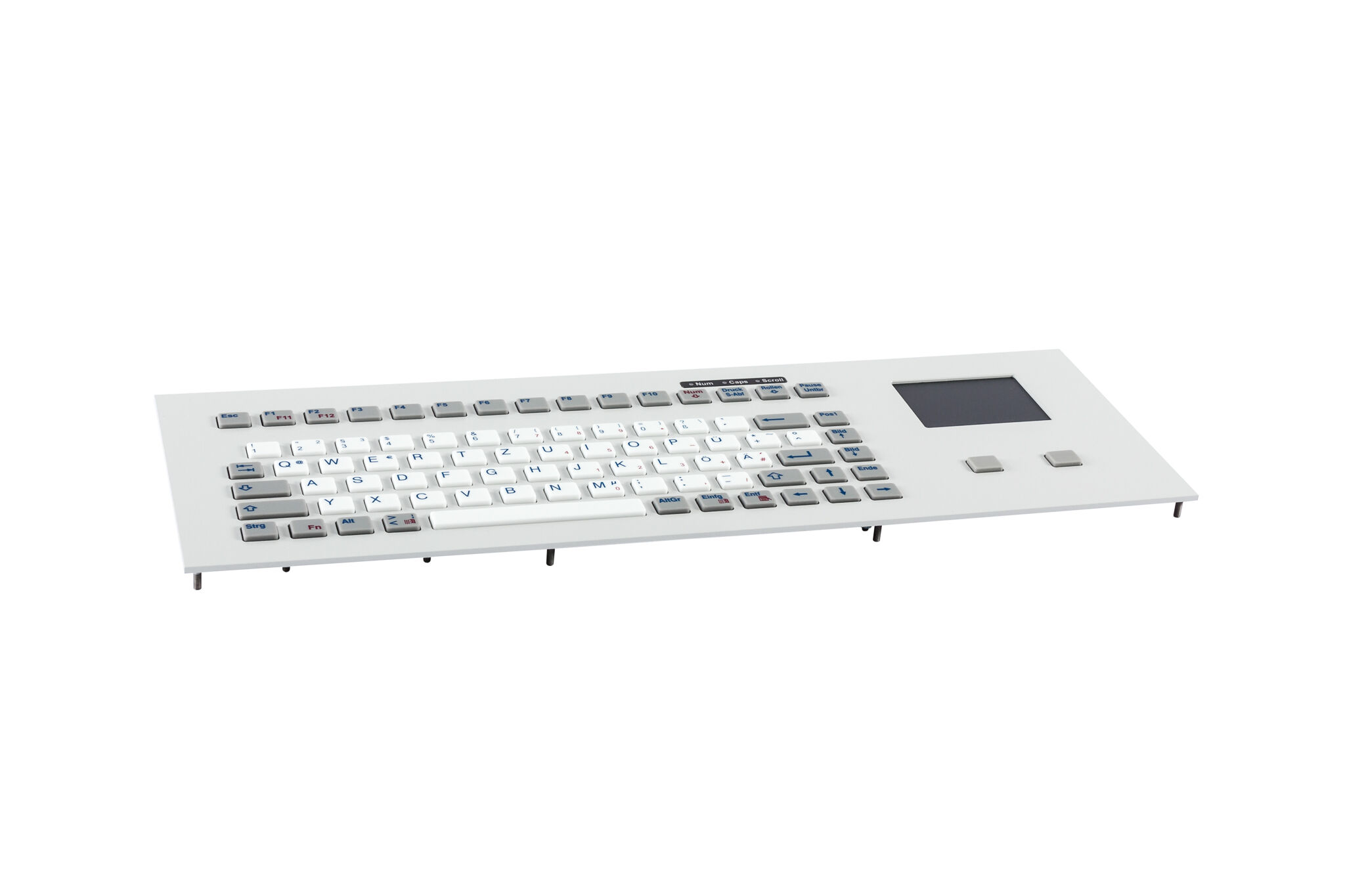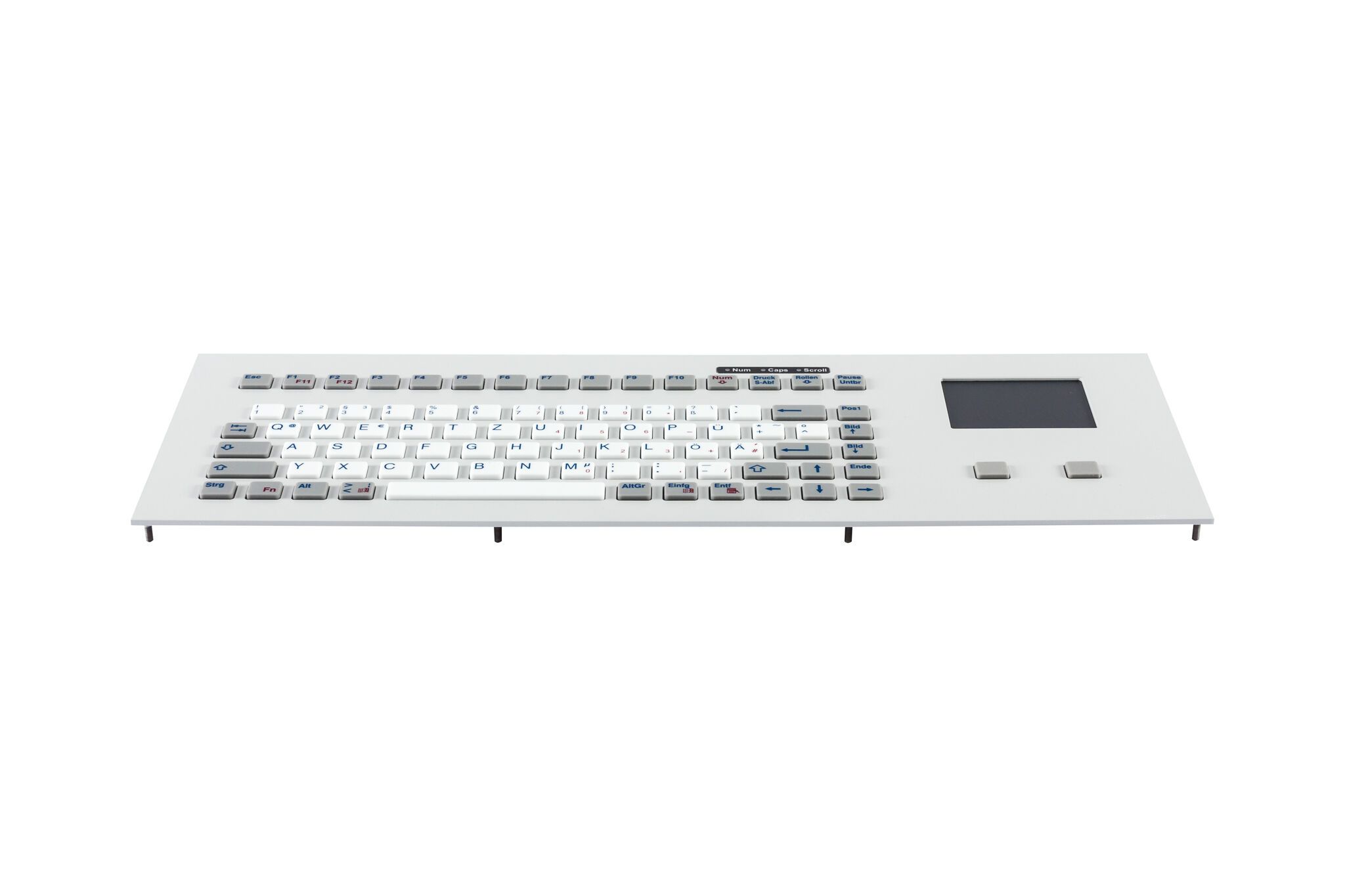 Industrial TKG panel mount keyboard in silver look with silicone keys and touchpad.